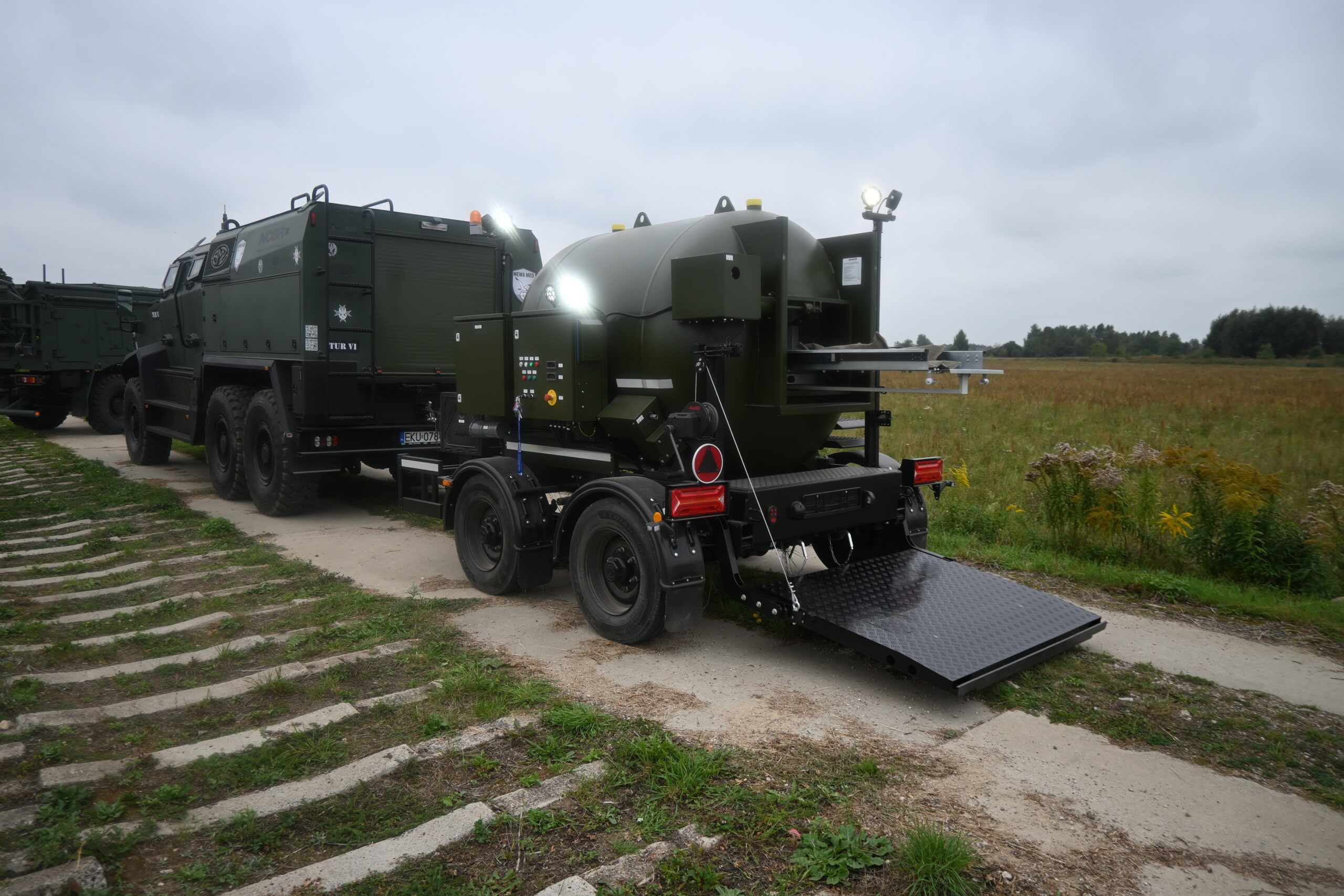 Опущена транспортна платформа забезпечує легкий доступ до завантажувального вікна для людей, які приймають бомби і снаряди, що не розірвалися, та інші підозрілі предмети, які можуть містити вибухівку, а також використання робота-інженера для виконання вищевказаних дій без втручання людини.